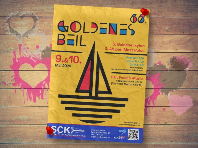 Unsere Frühjahrsregatta steht wieder in den Startlöchern – das 65. Goldene Beil, die 5. Goldene Ixylon in Kombination mit dem 3. Ab´pen-Mast-Pokal – das Segelspektakel für die Bootsklassen Pirat, Ixylon und OK im Revier Dahme. Um die Regatta noch attraktiver zu machen, werden wieder hochwertige Segelbattles im Fokus stehen, ein perfekt organisiertes Rahmenprogramm und einen grandios durchfeierten Samstagabend.